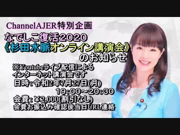 「緊急告知!!なでしこ復活2020杉田水脈オンライン講演会開催のお知らせ」杉田水脈AJER2020.7.23(x)