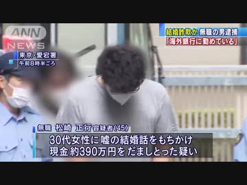 「海外の銀行に勤めている」結婚話で390万円詐取か(20/07/23)