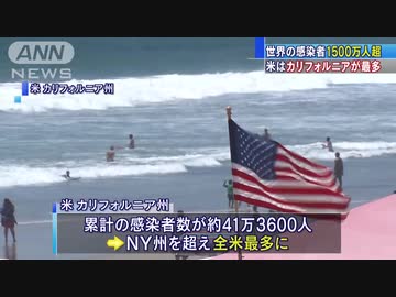 世界の感染者1500万人超 米はカリフォルニアが最多(20/07/23)