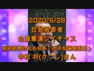 拉致被害者全員奪還ツイキャス 2020年06月28日放送分 産経新聞社社会部長(社会部編集委員)中村 将(かつし)さん コメント無し