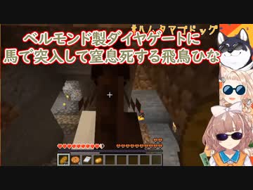 【Minecraft】ベルモンド製ダイヤゲートに馬で突入して窒息死する飛鳥ひな【にじさんじ切り抜き】