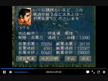 PS1版三国志5 何進VSゼノビア3回前編 一騎打ち無し