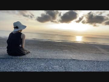【むらまこ】夕暮れに黄昏れ、物思いにふける黒服の20代美女