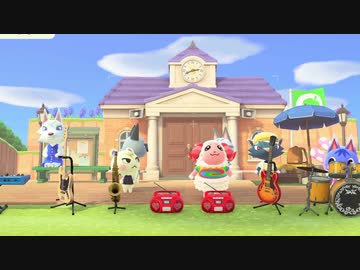 ジュンとブーケちゃんちゃちゃまるジャックが仲良く歌う「けけのロクンロール」!!クリスチーヌラムネは後ろで蝶々に夢中‼ ”あつ森”Rosie Dom Marshal Raymond Lolly