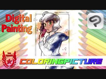 【Coloring page#1】animestyle digital painting/プロが塗り絵をアニメ塗りしてみた/school girl/CLIPSTUDIOPAINT