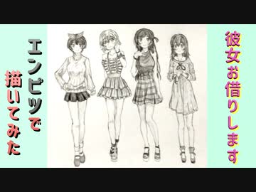 「彼女、お借りします」還暦男がHB鉛筆1本で描いてみた。