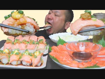 【モッパン】サーモンの刺身と寿司を食べる!大食い/日本人/飯テロ