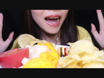 (前回の動画で間違えてしまいました)【可可來吃ASMR】ポテトチップスとフルーツを一緒に食べましょう