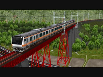 MMD鉄道で青梅線軍畑鉄橋のE233系