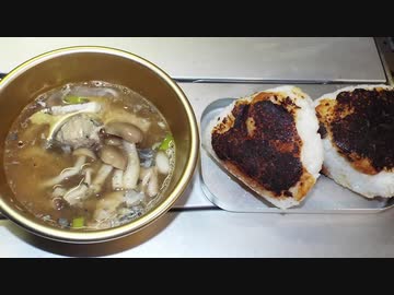 サバの水煮缶の汁物と焼きおにぎり