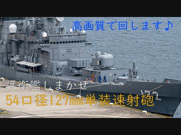 護衛艦しまかぜの54口径127mm単装砲回転光景