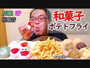 【ASMR】【咀嚼音】にっこりイチゴ大福とカリカリポテトフライ