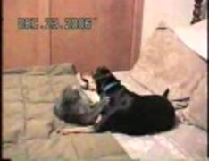 仲良しの犬と猫のたわむれ
