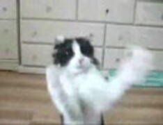 キャットフードをキャッチして食べる猫(*´д`)