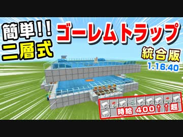【minecraft統合版1.16.40】『簡単!二層式!ゴーレムトラップ!マイクラ統合版ver1.16.40』練習を兼ねて作ってみた!2020年版