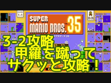 マリオ35解説攻略:3-2は甲羅を蹴ってさっさとゴール!【スーパーマリオブラザーズSUPER MARIO BROSバトロワ】