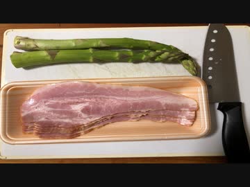 でっかいアスパラにベーコン巻いてビールを流し込むだけの動画