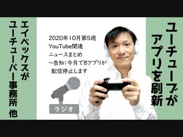 【ラジオ#239】2020年10月第5週YouTube関連ニュースまとめ~お知らせ:今月で8アプリが配信終了になります