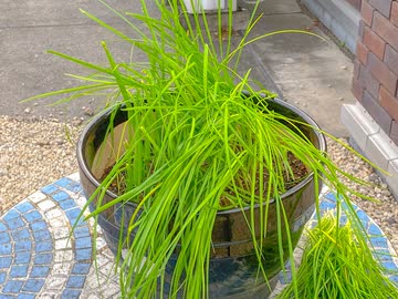 富三菜園、ボーボーに生い茂ったニラを間引く。