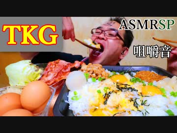 【ASMR】【咀嚼音】ヨード卵光のTKGをなっとう、なめ茸、漬物と一緒に喰らう!