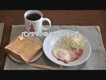 パンツマンのベーコンエッグ。