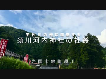 清流 宇佐川の傍に在る〜「須川 河内神社」と社叢の杉(野趣あふれる石の手水鉢) 岩国市錦町須川