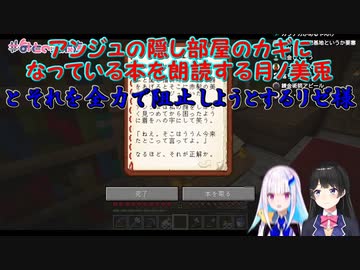 【Minecraft】アンジュの隠し部屋のカギになっている本を朗読する月ノ美兎とそれを全力で阻止しようとするリゼ様【にじさんじ切り抜き】