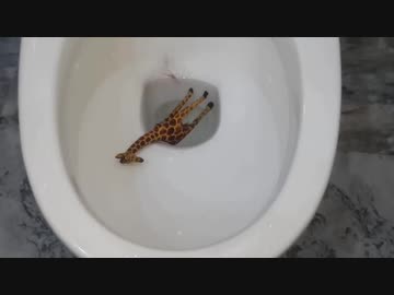 キリンのフィギュアをトイレに流してみた