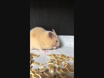 ハムスター動画(カボチャの種をあげると・・・)