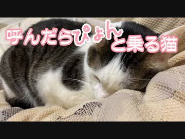 呼んだらぴょん♪と乗るにゃんこ