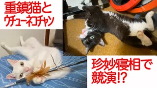 珍妙な謎寝相、伝説の重鎮猫とウチューネコチャンで競演する