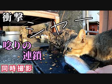 カリカリの後に魚二匹をあげたらどうなる?【野良猫の子猫と成猫たち】