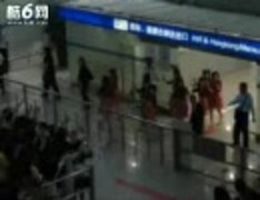 上海の空港に到着した、モーニング娘。