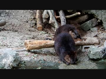 【ノーナレ動物動画】玄関先で旦那がご飯を食べていたので問答無用で門を閉める嫁ビーバー【のいち動物公園】