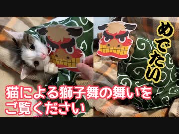 【お正月】おめでたい猫による獅子舞の舞いをお届けします。