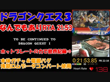 (実況動画)旧世界記録 FC版 ドラゴンクエスト3 なんでもありRTA ホットプレート温度調整&電源バグ 21:53