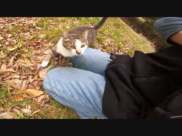 臆病で怖がりな野良猫が最終的にモフられてしまう動画