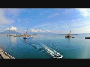 ある日の桜島(その246)<浚渫船と艀の交代作業と桜島>