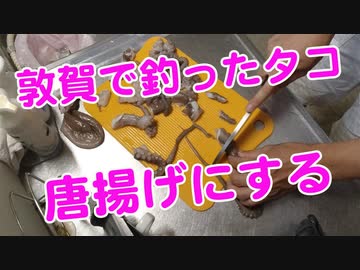 【料理動画】福井敦賀にエギングしに行ったら巨大タコが釣れたので唐揚げにして食べます!釣り動画
