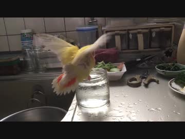 #コザクラインコの水飲みか? 水浴びか? 水遊びか?