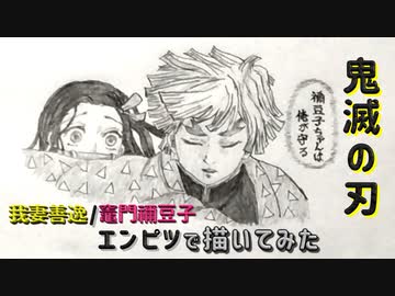 「鬼滅の刃 我妻善逸/竈門禰豆子」還暦男がHB鉛筆1本で描いてみた。