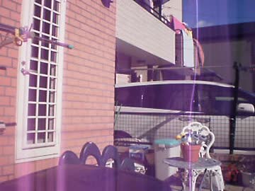ピンク色の電離放射線の光が追いかけてくる。