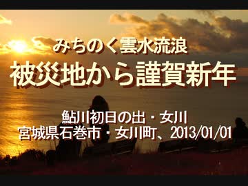【みちのく壁新聞】みちのく雲水流浪、被災地から謹賀新年、鮎川初日の出・女川、宮城県石巻市・女川町、2013/01/01