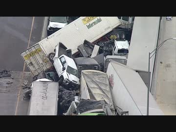 (冬の朝)フリーウェイで車70~100台が関係する玉突き事故1(米02/11)