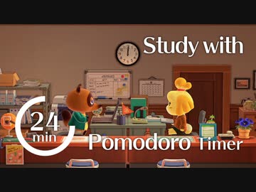 【05】【ポモドーロタイマー付き動画】24分作業6分休憩2H*4【作業用】室内環境音PCタイピング音(静かなノイズ)・作業音 集中・作業効率アップ あつ森案内所でたぬきち・しずえと勉強しよう!