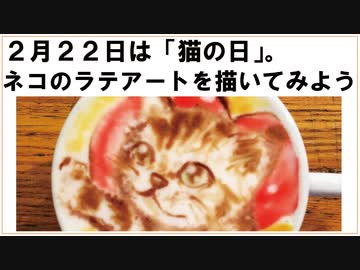 2月22日は【猫の日】だから、ネコのラテアートを描いてみよう。