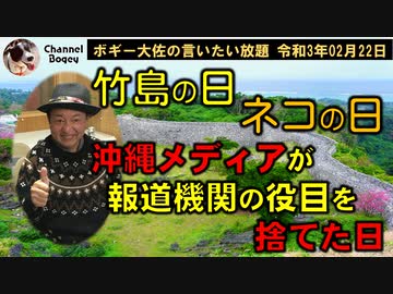 竹島の日、ネコの日、沖縄の新聞が報道機関としての矜持を捨てた日 ボギー大佐の言いたい放題 2021年02月22日 21時頃 放送分