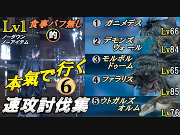 【FF15】レベル1・食事バフ無し的、速攻討伐集!⑥(VSガニメデスLv66&デモンズウォールLv84&モルボルドゥームLv65&ファラリスLv85&ウトガルズオルムLv76)