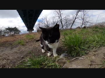 マスクを被ったような野良猫が追いかけてくるw