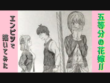 「五等分の花嫁∬ 上杉風太郎/中野二乃/中野一花」還暦男がHB鉛筆1本で描いてみた。